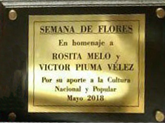 AÑO 2018: En virtud de la celebración de la Semana de Flores (barrio en el que Rosita y Víctor vivieron por mas de 50 años y donde crearon sus obras musicales y literarias desde su adolescencia) se hizo un homenaje a su memoria con la entrega de una placa en reconocimiento a su aporte cultural.